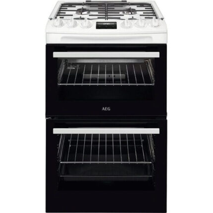 AEG CGX1130ACW 55cm Freestanding Gas Cooker with Double Ovens – White Compact Design, Powerful PerformanceThe AEG CGX1130ACW brings reliable gas