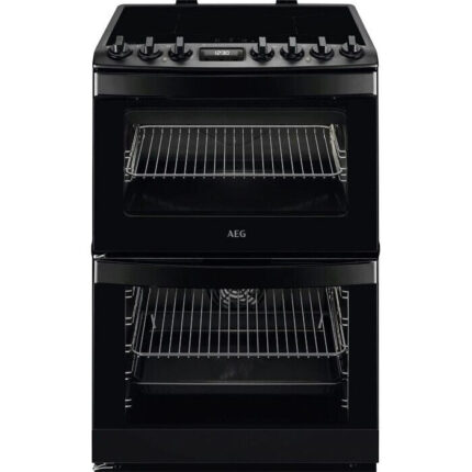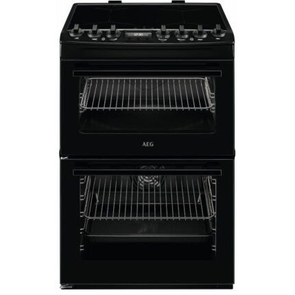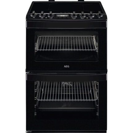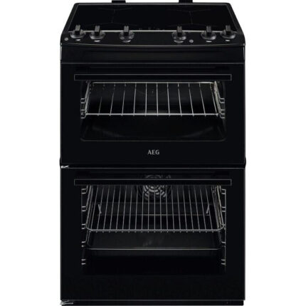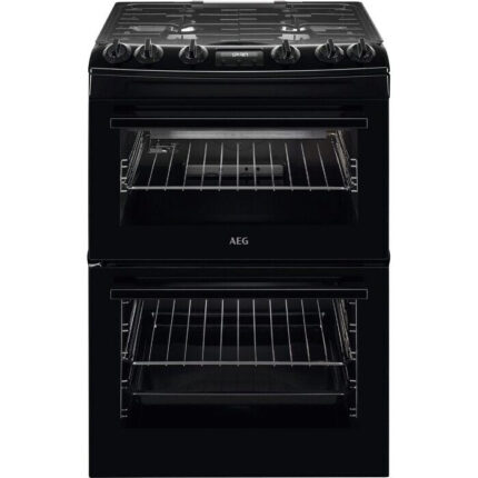 AEG CGX6130ACB 60cm Freestanding Gas Cooker with Double Oven – Black Precision Cooking Meets Effortless CleaningThe AEG CGX6130ACB gas cooker