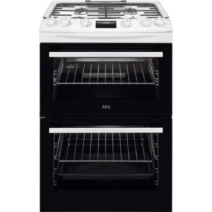 AEG CGX6130ACW 60cm Freestanding Gas Cooker – Double Oven Power and Precision in White Experience seamless cooking performance and powerful